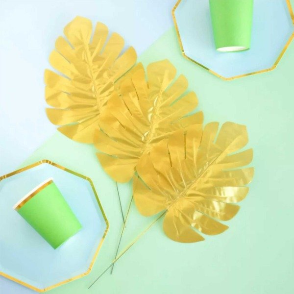 Hojas Artificiales con Tallo color Gold medianas. Contienen 1 Unidad. Medida: 21 x 17 cm