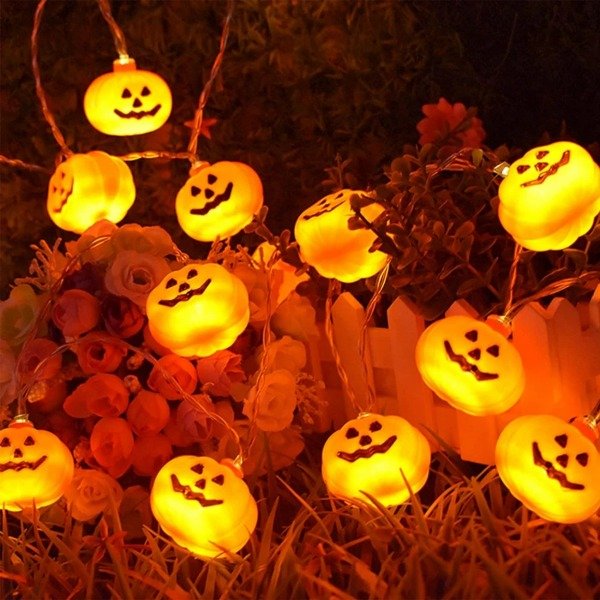 GUIRNALDA DE LUCES EN FORMA DE CALAVERA. COLOR CÁLIDO.
