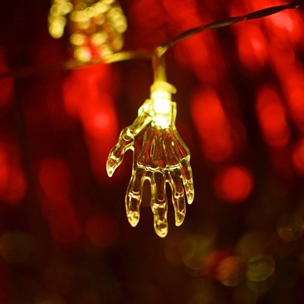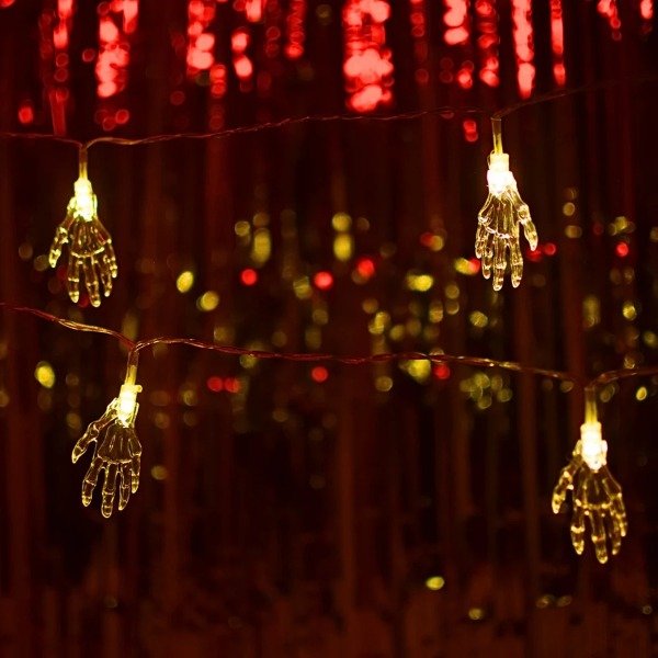 GUIRNALDA DE LUCES EN FORMA DE MANOS DE ESQUELETO.