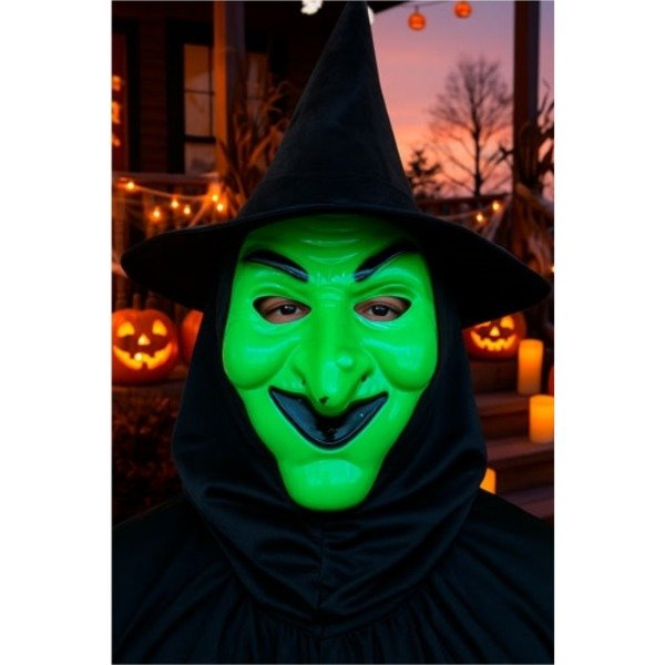 Mascara rígida con manto bruja